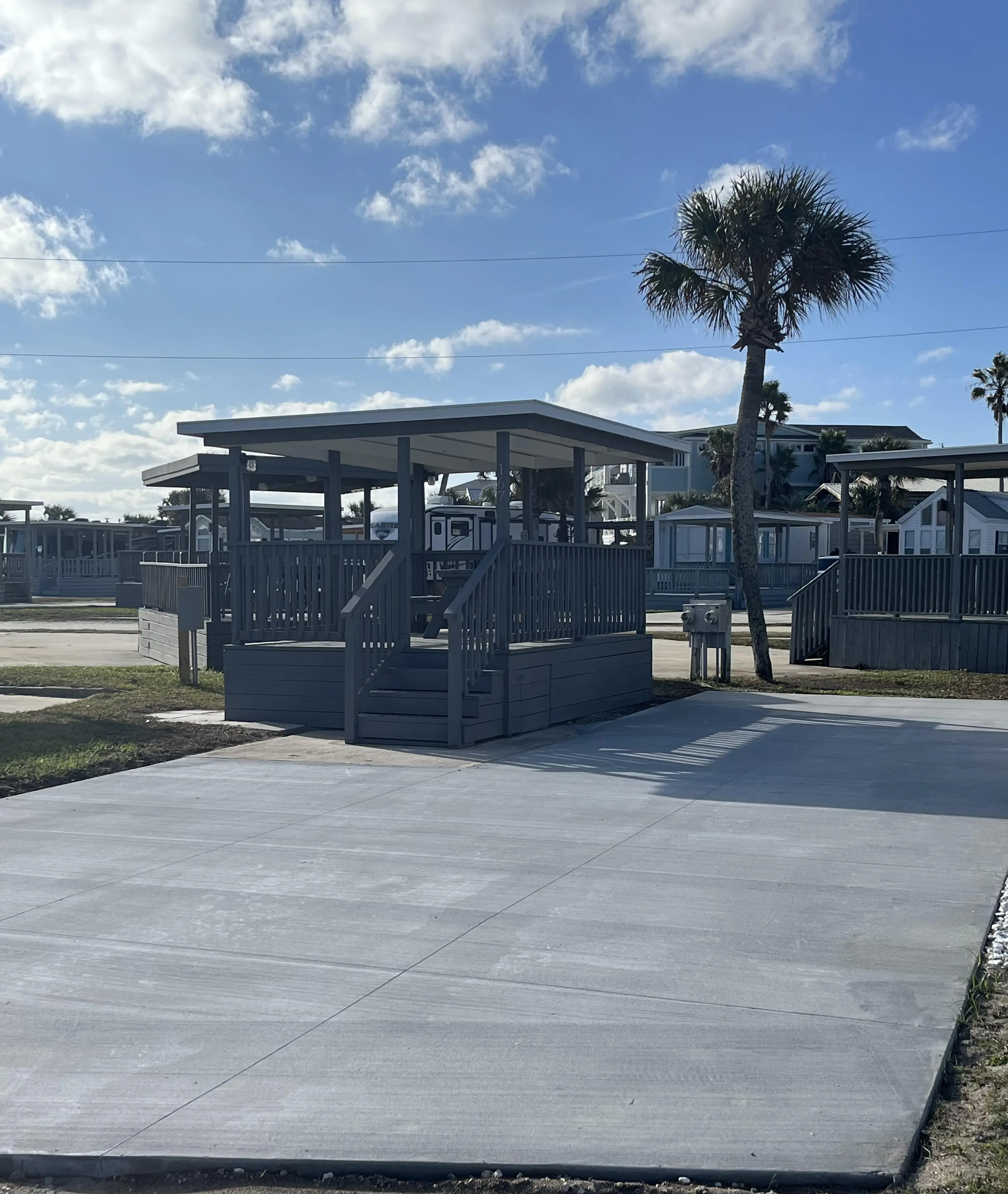 These sites are steps from our beach boardwalks and close to the mid-park heated pool with a hot tub. Some offer Bandstands for shelter or ocean views. All come with a picnic table, full hookups, and a concrete pad.